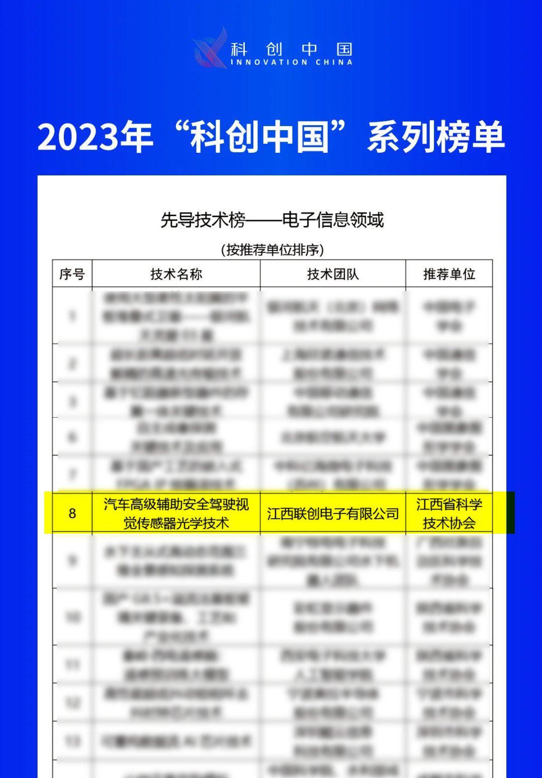 【概要描述】近日,中国科学技术协会公布了2023年度“科创中国”系列榜单遴选结果,球速体育,球速qiusu(中国)的“汽车高级辅助安全驾驶视觉传感器光学技术”成功入选电子信息领域先导技术榜。
